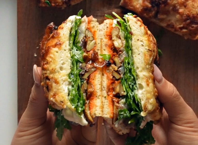 Layers of roasty mushrooms, havarti, lemony arugula, and an easy homemade horseradish aioli make this mushroom sandwich a WINNER. A saucy, salty, hefty masterpiece!