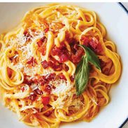 Creamy Squash Fettuccine with Caramelized Onion and Pancetta