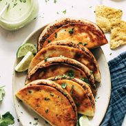 I made these tonight and they’re going to become a regular meal for us. Easy enough for my husband to make them and my 1 year old loved eating them! I prepped the sauce and bean filling during nap time, then just had to assemble and cook! I tried some in the air fryer (7 minutes at 350, flipped halfway through) and some pan-fried and both were great. Pan-fried are definitely more flavorful (and super, super easy!) but the air fryer will definitely be handy for cooking a lot at one time!