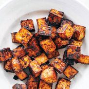 Step 3: This crispy tofu can be tossed with a sauce after cooking for extra flavor. We used triangles of tofu, but cubed or sliced tofu works well with this cooking method, too. If cooking cubed tofu, flip onto all sides during the cooking process to ensure even crispiness.
