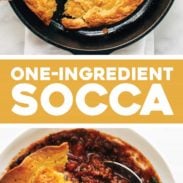 One Ingredient Socca! Amazing, crispy, golden brown, flaky flatbread that requires just ONE ingredient. Just mix, pour, bake, and done!